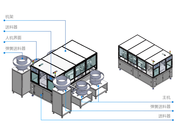 本設備為非標定制產品,用于醫用預充針保護裝置的自動裝配,采用雙工位模式,可以同時工作,也可分開工作。整機機械結構設計合理、結構緊湊、強度較高,框架主體采用304不銹鋼方管焊接制作,封板為304不銹鋼材質、透明亞克力板或鋼化玻璃。